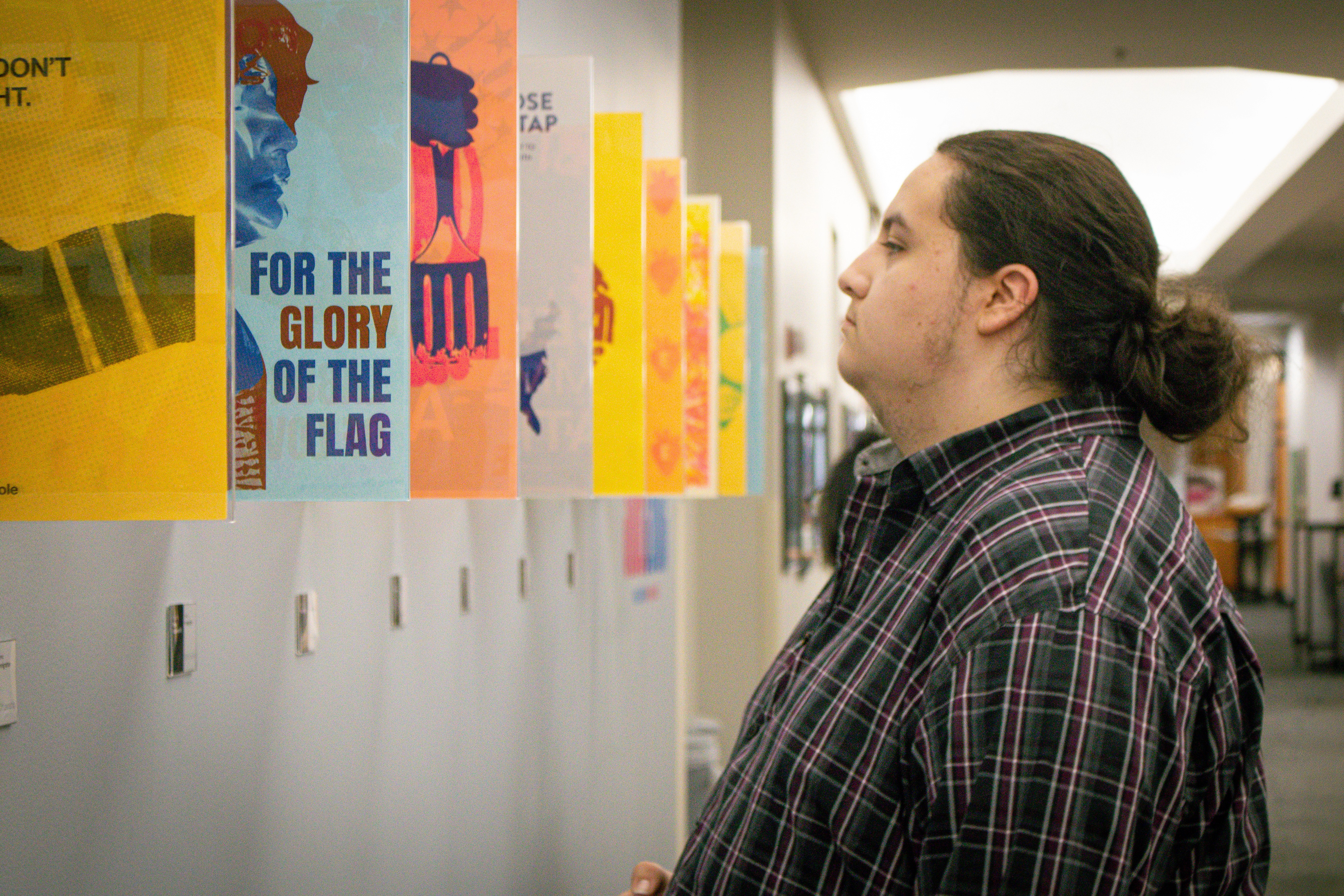 Visit the exhibition on the first floor of the Monroe Library to experience these thought-provoking works and see the world from both sides.