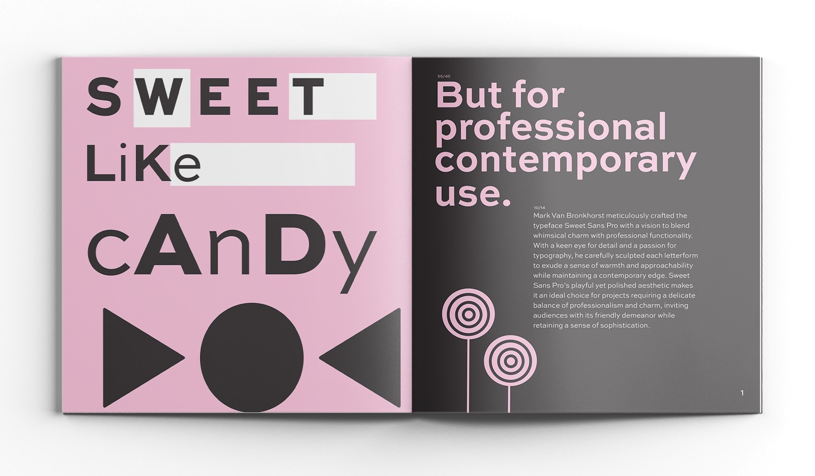 Created in Typography II, this physical book is a detailed type study of the font Sweet Sans Pro. Through thoughtful layout, hierarchy, and design exploration, the specimen showcases the typeface’s versatility, clean geometry, and contemporary elegance across various applications.